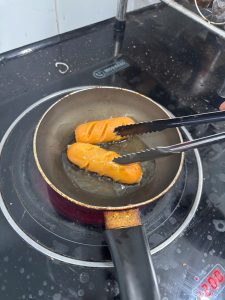 Sai lầm rất phổ biến là cho xúc xích vào nước đang sôi hoặc hấp ở mức nhiệt quá cao, điều này khiến protein bị sốc nhiệt và co rút cực nhanh, kéo theo việc nước trong cây bị đẩy ra ngoài gần như tức thì, dẫn đến teo tóp toàn thân hoặc tóp mạnh ở phần đầu cây; quy trình chuẩn là tăng nhiệt từ từ và giữ ổn định quanh 75–78°C để protein đông nhẹ, giữ được nước và duy trì sự căng mọng. Nếu quá trình nấu không được kiểm soát, ngay cả một mẻ nhũ tương đẹp vẫn dễ bị hư form.