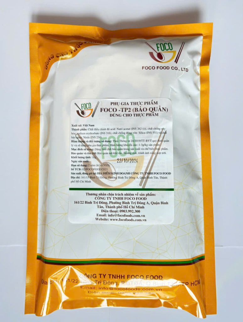 Foco – TP2 hoạt động như một tổ hợp kháng khuẩn tự nhiên, ức chế vi sinh vật gây hư hỏng và ngăn chặn hiện tượng ôi thiu do vi khuẩn và enzyme phân hủy protein.