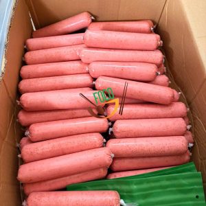 - Thành phần: Sodium chloride (muối ăn) (28.02%), Mononatri L-glutamat (INS 621) (18%), bột tỏi (13%), Distarch phosphat (INS 1412) (tinh bột bắp biến tính dạng đã hồ hóa) (11%), Maltodextrin (7.92%), Glucono Delta lacton (INS 575) (6%), Tetrasodium diphosphate (Tetrasodium pyrophosphate) (INS 450(iii)) (3.7%), Natri erythorbat (INS 316) (3.006%), Natri acetat (INS 262(i)) (3%), Pentasodium triphosphate (Sodium tripolyphosphate) (INS 451(i)) (2.5%), Natri diacetat (INS 262(ii)) (1.3%), Disodium diphosphate (Sodium acid pyrophosphate) (INS 450(i)) (0.4%), Sodium polyphosphate (Sodium hexametaphosphate) (INS 452(i)) (0.4%), Carrageenan (INS 407) (0.4%), Sodium nitrite (lNS 250) (0.3%), Kali sorbat (INS 202) (0.3%), Sorbic acid (INS 200) (0.3%), Red yeast rice powder (bột gạo đỏ) (0.2%), Transglutaminase (0.08%), Chất chống đông vón (INS 551) (0.054%), Dextrose Monohydrate (0.04%), Nước khử ion (0.0477% – 0.0489%), Nisin (INS 234) (0.02%), Carmines (INS 120) (0.009% – 0.01%), Kali Hydroxyd (INS 525) (<0,002%).